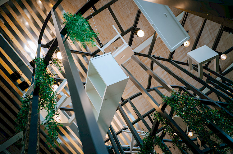 Legendary Booths Need Legendary Partys. The Siempelkamp LIGNA party was one of them. True to the motto “Work Hard – Play Hard,” we designed an extravagant evening for Siempelkamp and a selected group of clients. 350 guests celebrated in style at the former Belgian Pavilion near the trade fair. Culinary delights were served at various food stations and bars, and dancing continued late into the night.