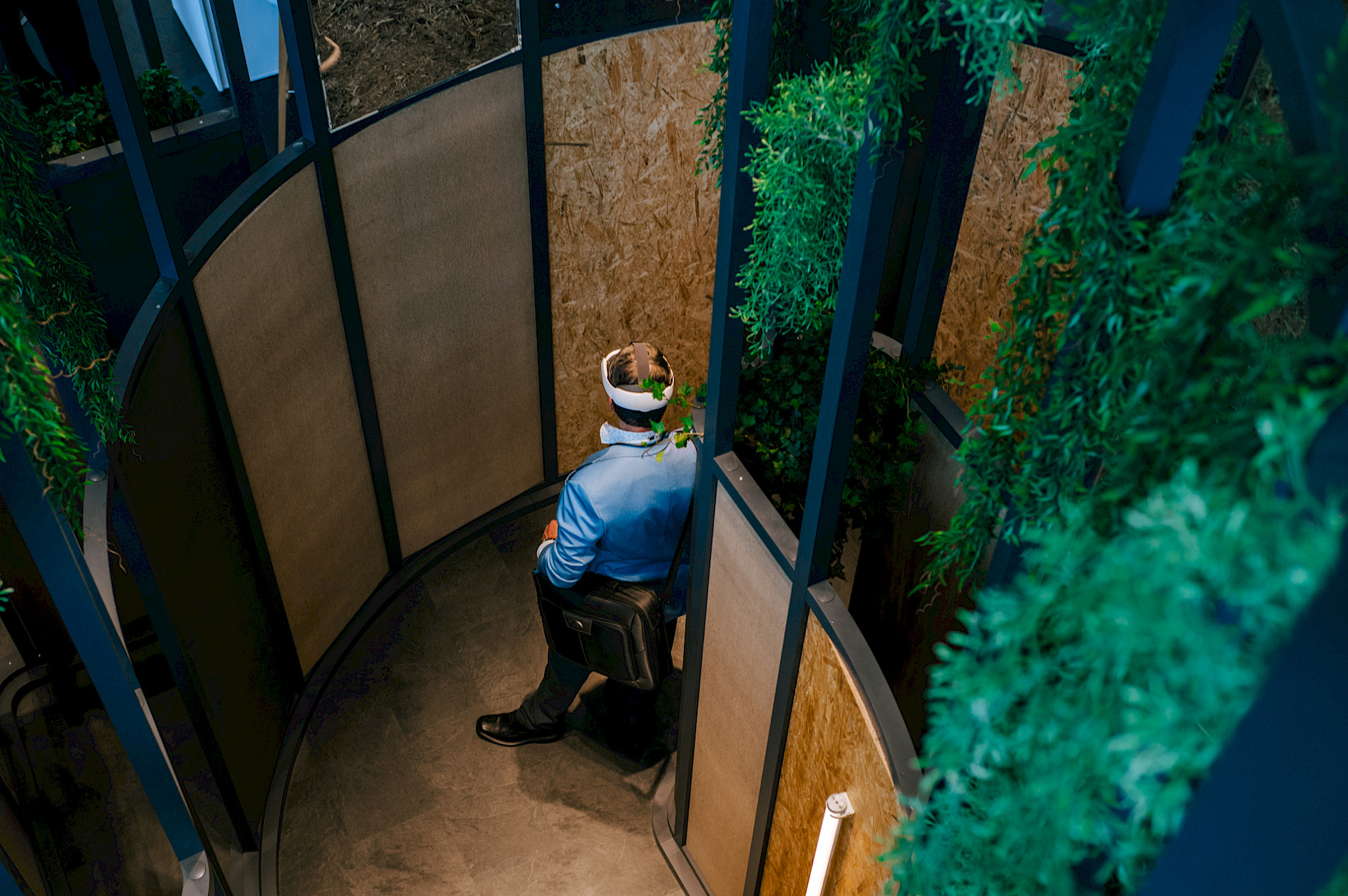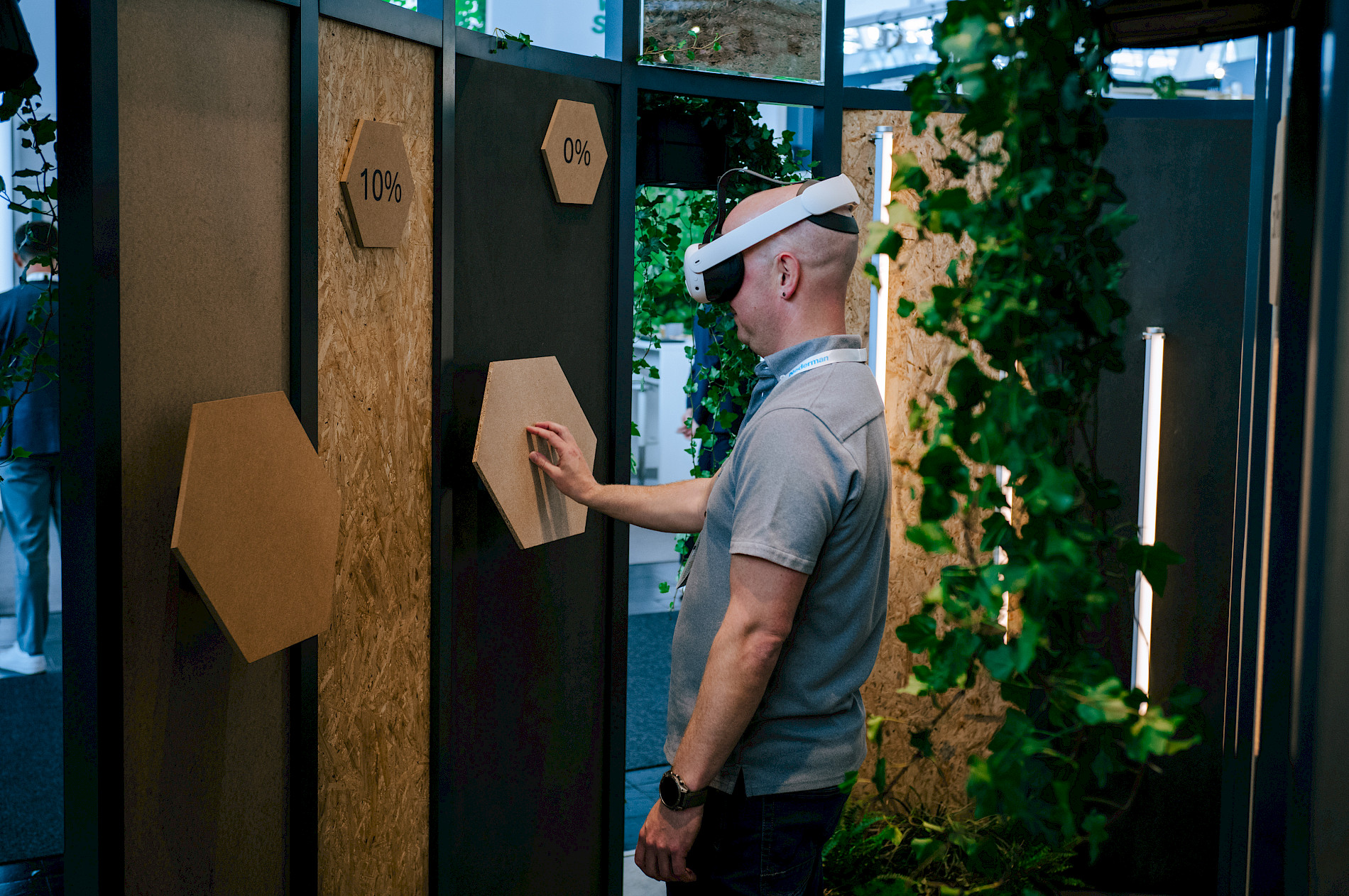 Together with our client, we developed an augmented reality experience focused on recycling – visitors could dive deep into the interior of the Siempelkamp Recycling Tower using a MetaQuest3 headset. The immersive experience was based on projected content integrated into the booth architecture, AI-generated voice-overs, and numerous calls to action that engaged visitors to touch, listen, see, and marvel.